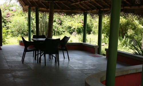 Independant standing unit with bedroom, kitchnette and bathroom, with it’s own garden and a sitting room. This unit is located in the Auroville guest house, swimming pool, pool, poolside, cafe, and beach.