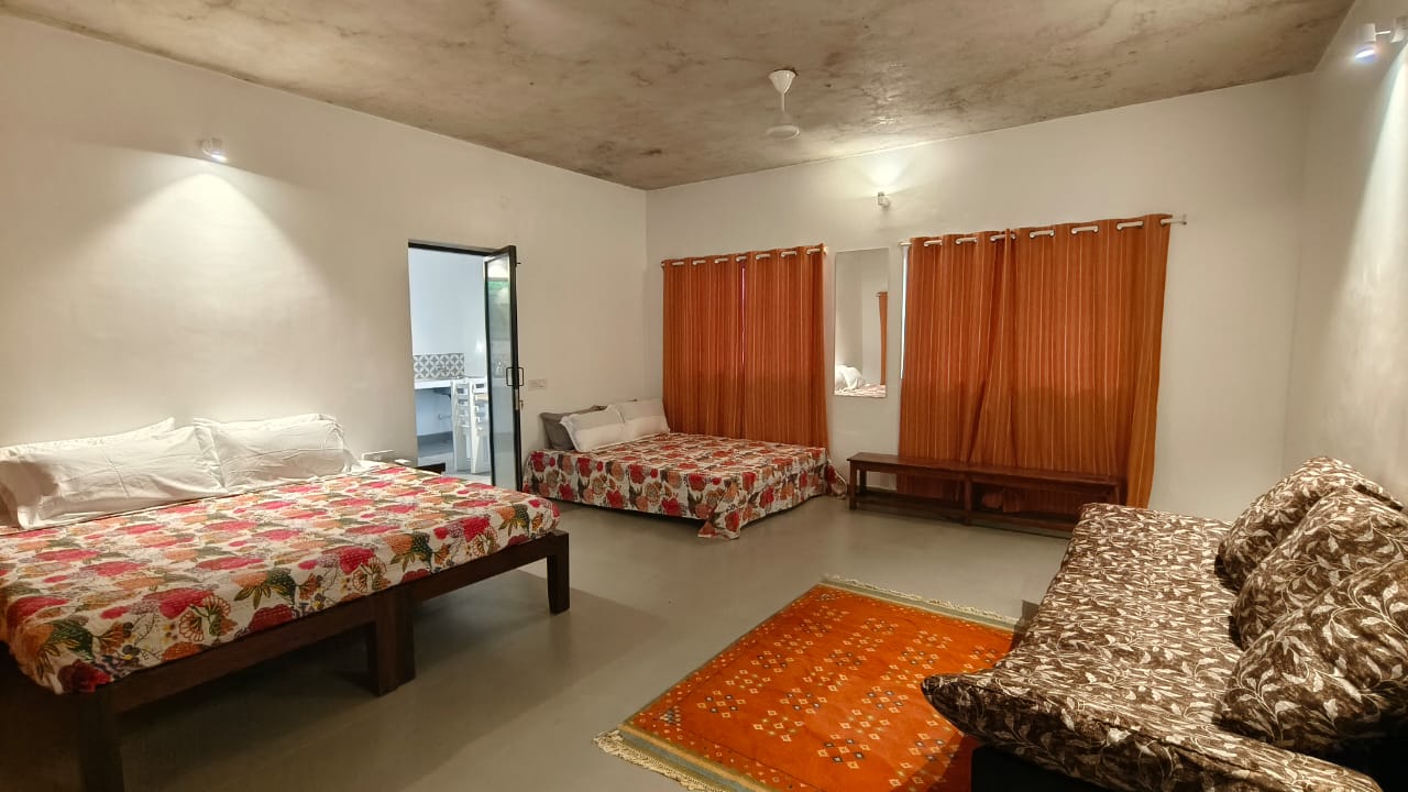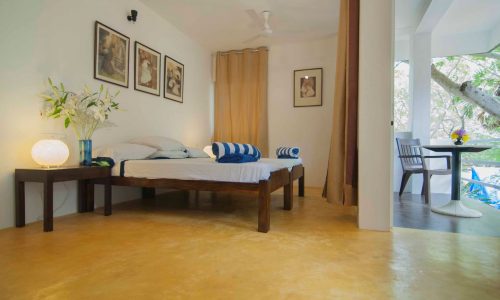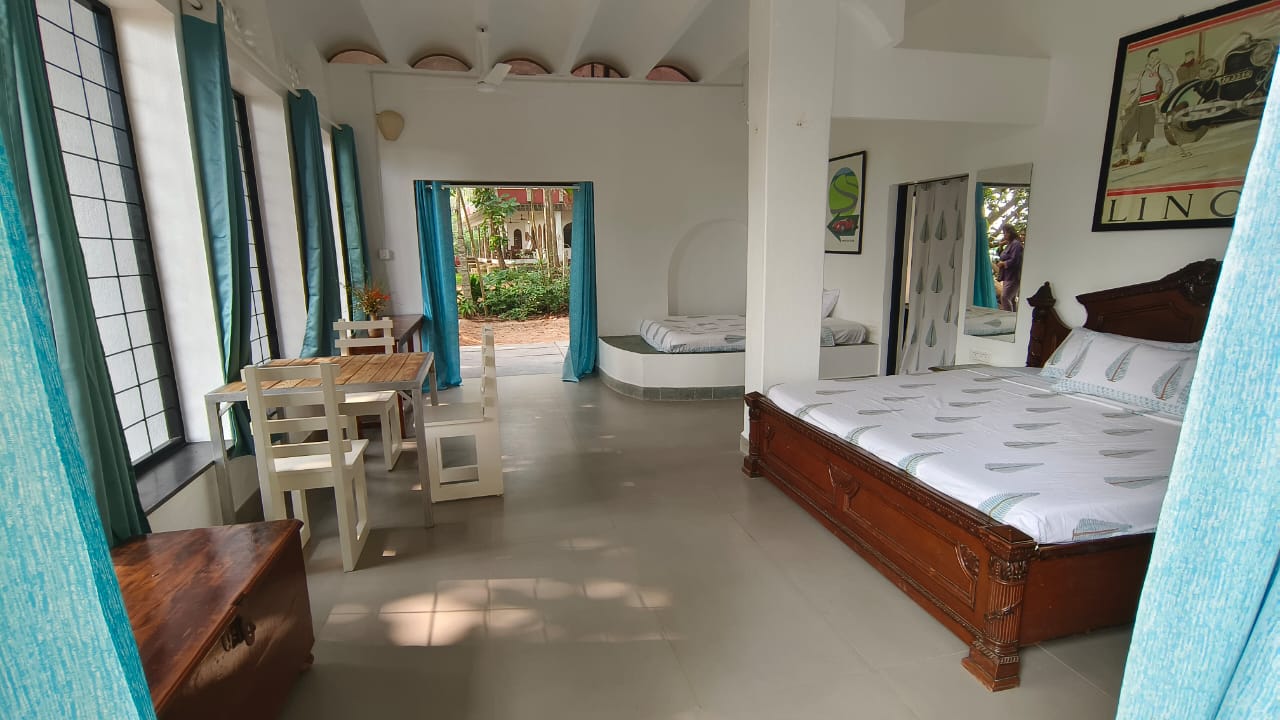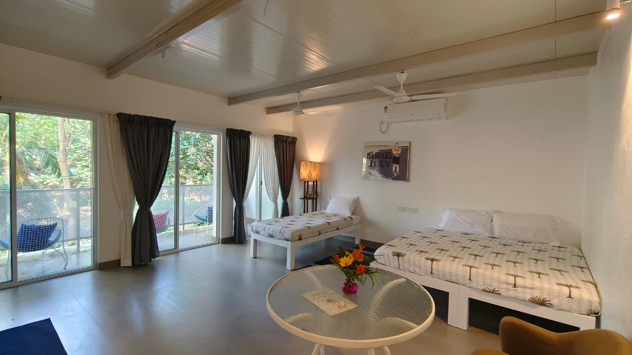 Independent freestanding and self-contained cottage with a garden all around and a short walk from the beach gate. Uses the main pool, non ac, 1BHK unit for 2-3 guests. Minimum 1 week stay.